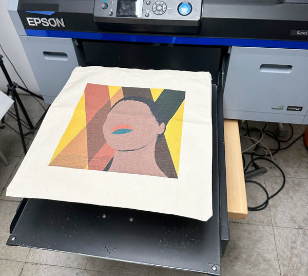 Digital printing is a modern printing technique where your image is printed directly onto the tote bag fabric using specialized digital printers., but with advanced textile inks.